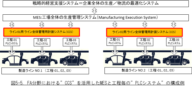 現状、FA分野では 原則的にMES(工場管理システム)部分に各ライン内の各生産設備毎のPLC等のシステムが直接つながり生産ラインの操業/運転が